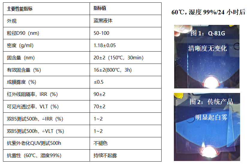 2. 極端天氣下性能保持穩(wěn)定,內(nèi)部不起霧:突破傳統(tǒng)鎢銫青銅介質(zhì)技術(shù)瓶頸,在-20℃低溫環(huán)境及60℃、99%高溫高濕環(huán)境下均能保持無霧狀態(tài),避免汽車前擋膜內(nèi)部起霧影響視線、威脅行駛安全,保障視窗玻璃長期清晰,不影響采光與視野;
